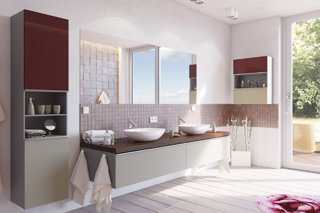 Symbolem romantiky je ale přece jen i jedna výraznější barva, a to bordó. I tu můžete dopřát svému koupelnovému nábytku, volte ji však střídmě a kombinujte s neutrálními odstíny, aby celkový výsledek působil jemně a harmonicky. „Lesklý odstín bordeaux nabízí například naše akrylátová dvířka T.acrylic, která v koupelně oceníte zejména pro jejich vlastnosti,“ říká Martin Dusík, obchodní ředitel společnosti Trachea, největšího českého výrobce nábytkových dvířek a panelů, a pokračuje: „Hrany akrylátových dvířek jsou totiž olepené technologií PUR, při níž je potřeba daleko méně lepidla než u jiných způsobů olepení. Vzniklá spára mezi hranou a čelní plochou dvířek je tak téměř neviditelná, nezanáší se nečistotami a zároveň zcela efektivně brání průniku vlhkosti do vnitřku dvířek. Lesklá akrylátová dvířka T.acrylic lze navíc v případě drobného poškrábání i snadno opravit.“ Povrch akrylátových dvířek je UV stabilní, a tak máte jistotu, že bordó odstín ani po letech nevybledne.