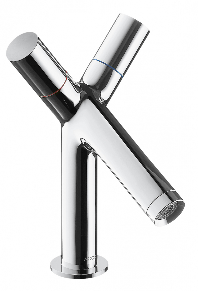 Umyvadlová baterie AXOR Starck 2 (AXOR) z roku 1998 podpořila kulturní proměnu koupelen. Armatura ztvárňuje vodní tok, vodopád sevřený dvěma skalními útesy, za její podobou stojí opět velmistr mezinárodního designu Philippe Starck.