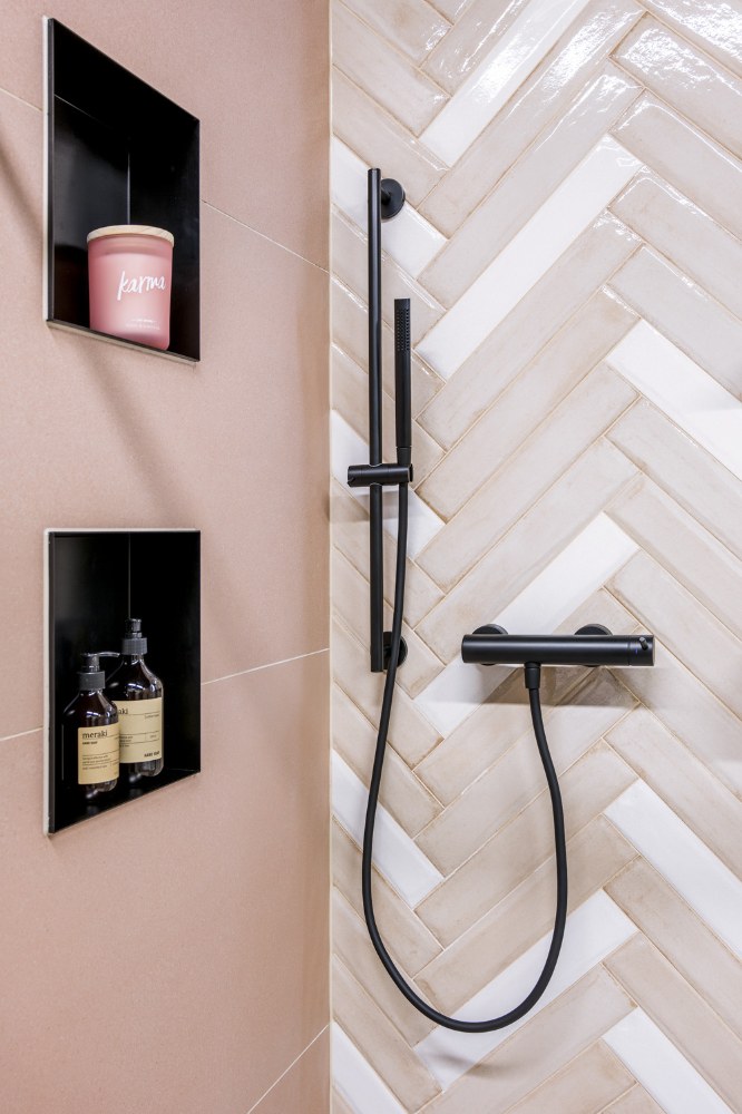 Máte rádi pestré barvy? Zkuste je použít v menším množství například na obložení soklu, jedné stěny za sprchovým koutem nebo vytvořte v obkladech barevný pruh!