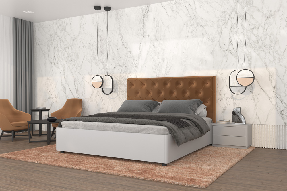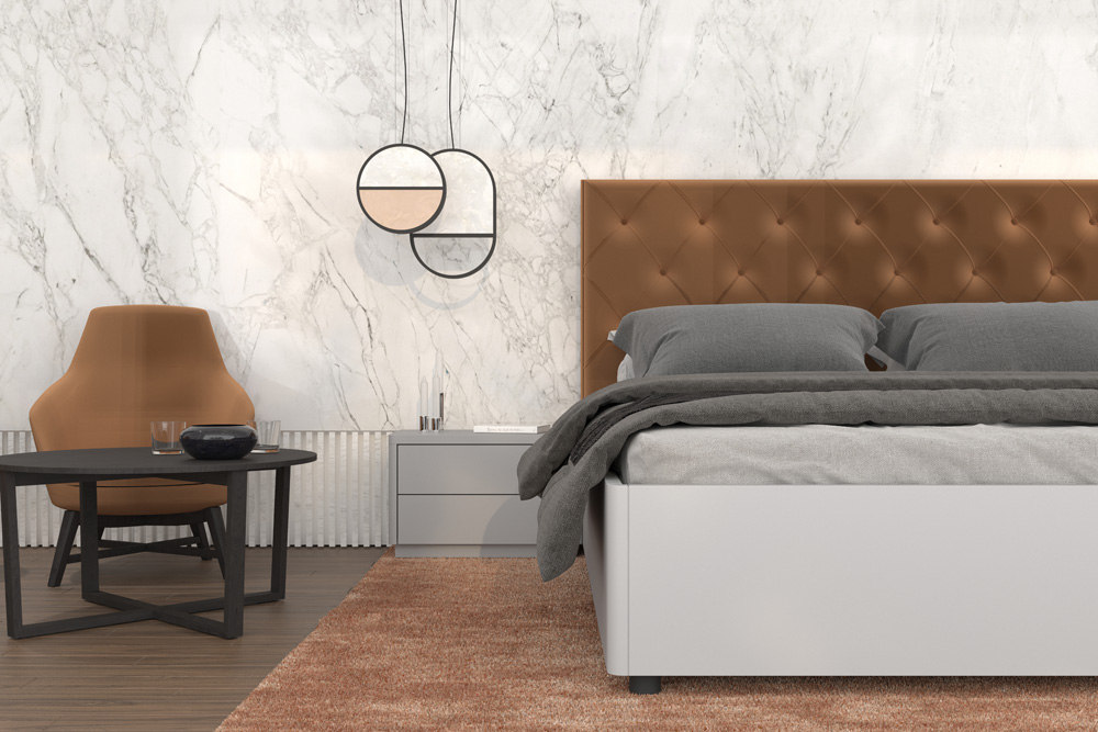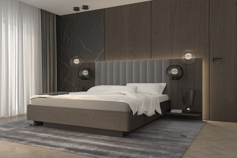 Královská ložnice ELISABETH s prošívaným čelem korunuje váš interiér na zcela jinou úroveň. Noční stolky do detailů kopírují tvar boků postele a dohromady tak utváří sehranou designovou dvojici. Propracované čelo postele si u nich můžete dopřát v kůži, látce, či sametovém provedení, které jen podtrhuje jedinečnost celé ložnice.