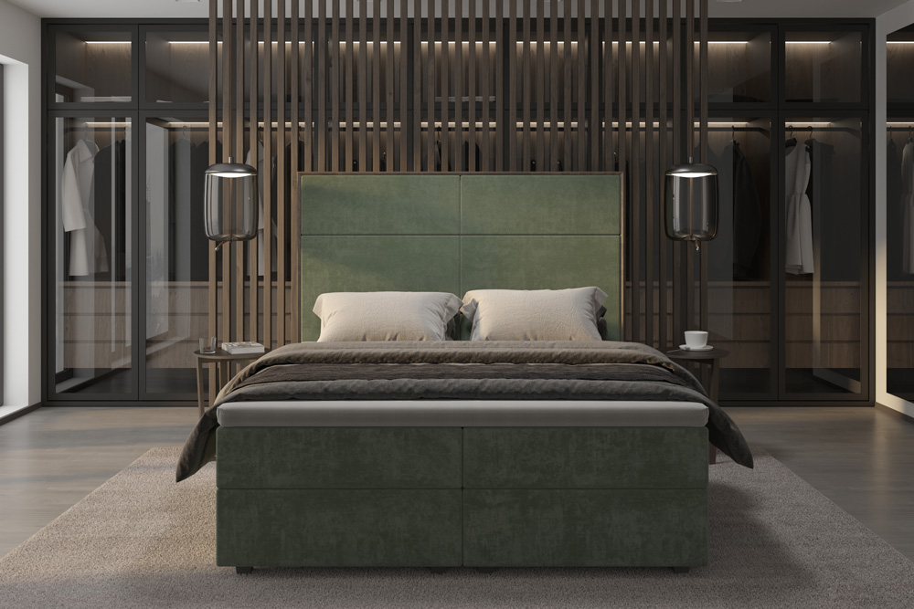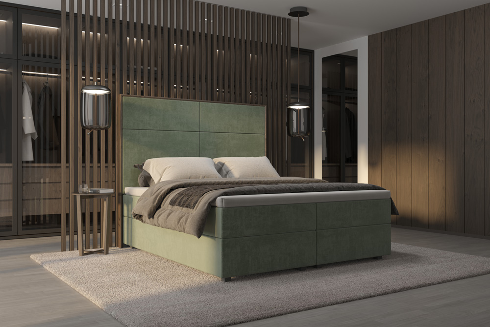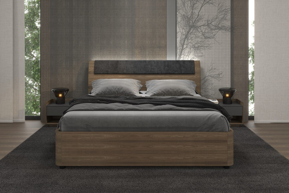 V ložnici MADISON se vám budou zase zdát jen ty nejkrásnější sny. Promyšlená a dokonale zpracovaná rámová postel vás nadchne na první pohled svým látkovým provedením, které je decentně doplněno o vybranou přírodní dýhu, jenž se propisuje také na rám čela postele i noční stolky. Udělejte si pohodlí a jen si vychutnávejte její jemné a minimalistické provedení.