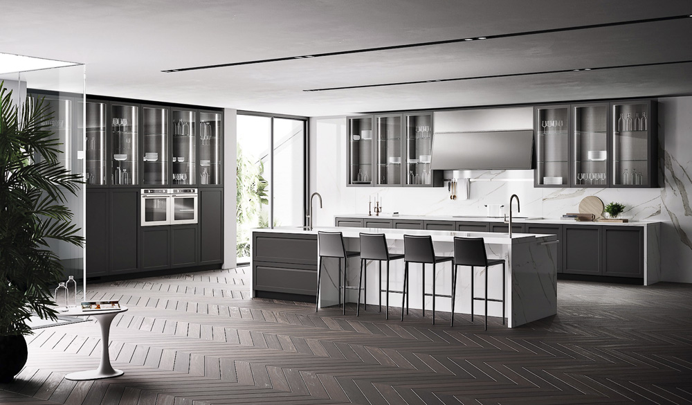 V segmentu TOP kuchyní nyní převažují tmavší a teplejší barvy, spíše odstíny šedé nebo černý dub. Bílý vysoký lak je nyní na ústupu právě i z důvodu, že kuchyně bývají součástí obytného prostoru, na jehož vybavení jsou kladeny jiné požadavky.