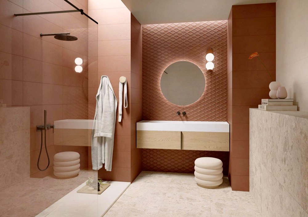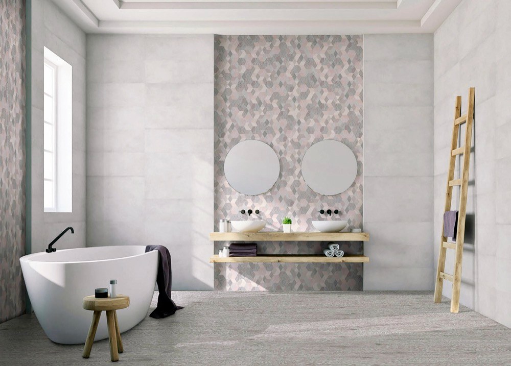 Stěna dekorovaná keramickými obklady je zajímavým akcentem koupelny. I jedna výrazná stěna může být wellness pro oči i duši.