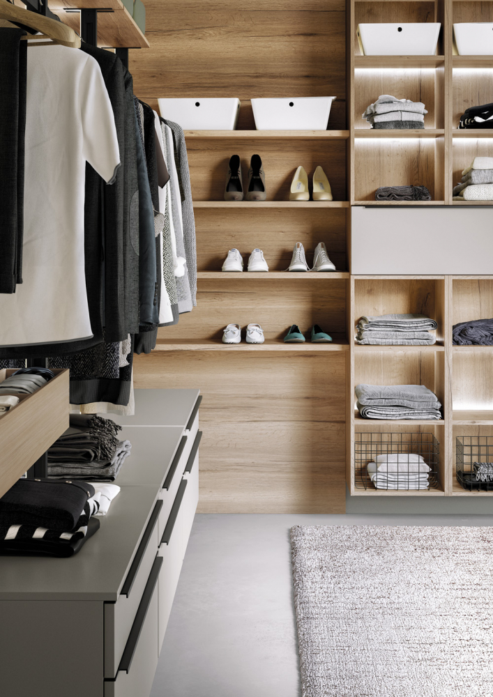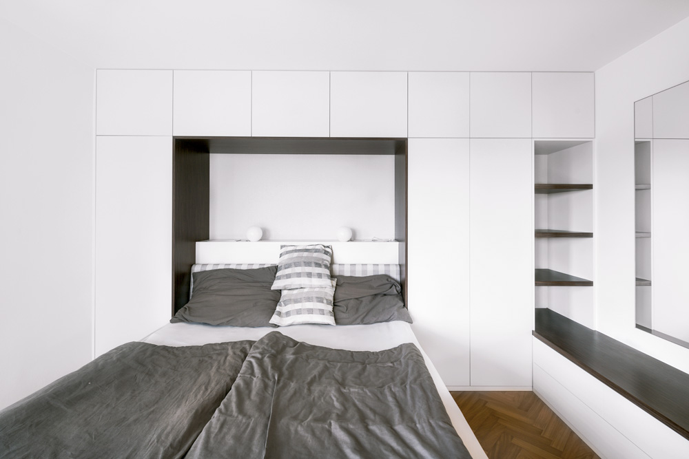 Do šatních skříní se zkrátka vejde ledacos – od spodního prádla až po dobře vyžehlené sukně i kalhoty. A kdyby náhodou ne, jistí to postele s úložným prostorem i celé šatny.