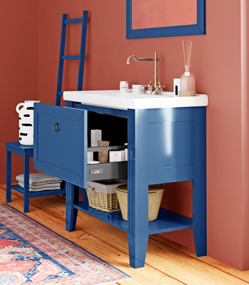 „Řada KVADRO vyniká tenkými liniemi korpusu. K otevřeným nikám i doplňkovým skříním ze stejné kolekce ladí stylové umyvadlo na desku,“ přibližuje Ing. Petr Blažek, ředitel společnosti Dřevojas, tradičního českého výrobce koupelnového nábytku a pokračuje: „Frézovaná čela zásuvek a frézované nohy skříněk definují rustikální řadu ANTIK. Její osobitý styl pak umocňují originální pastelové laky či ruční patina. Skříňky jsou osazeny keramickým umyvadlem Grace s praktickým vyvýšeným okrajem.“