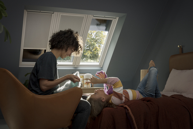 Pusťte světlo dovnitř, když potřebujete extra porci energie, a „vypněte ho“ nebo ztlumte, když chcete relaxovat nebo když vás jarní či letní sluníčko začíná rušit. Vzhledem k tomu, že rolety VELUX jsou k dispozici v manuální i dálkově ovládané verzi, není regulace světla problémem ani u vysoko umístěných střešních oken. Rolety VELUX s vestavěným motorem lze snadno ovládat dálkovým ovladačem, mobilní aplikací nebo dokonce automaticky pomocí senzorů.