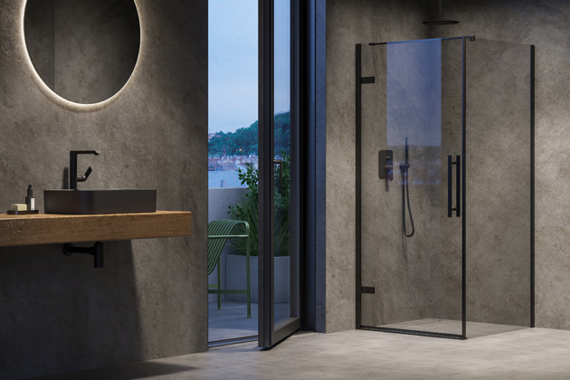 Série sprchových koutů Cool!, bezrámová konstrukce, povrchová úprava chrom nebo černá, pantové otevírání, skleněná výplň, rozměry 80–120 cm, možnost použití sprchových dveří či vytvoření rohového sprchového koutu, cena podle typu na dotaz