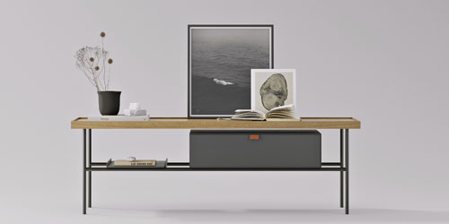 Foto: TrekuKutxa (Treku), design Iratzoki & Lizaso, televizní stolek z ořechového dřeva s lakovanou zásuvkou, cena 56 282 Kč → www.stockist.cz