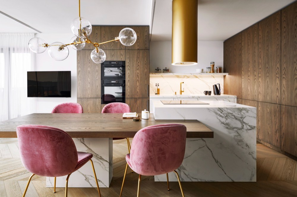 Teplé barvy dodávají každému interiéru na optimismu a útulnosti. Hřejivé odstíny celkově povzbuzují chuť k jídlu a stimulují v lidech také komunikaci. A právě komunikace je u jednoho stolu víc než důležitá. I když staré dobré pravidlo říká, že s plnou pusou se nemluví. To věděly už naše babičky. A na paměti to má i každý požitkář, který si umí do sytosti užít první i poslední sousto. U přívětivých odstínů se nebojte pracovat s kontrasty, jejich srdečnost to ještě více podtrhne. Jestliže vám to prostor dovolí, pracujte s kuchyňskou místností tak, abyste oddělili její pracovní a odpočinkovou část.