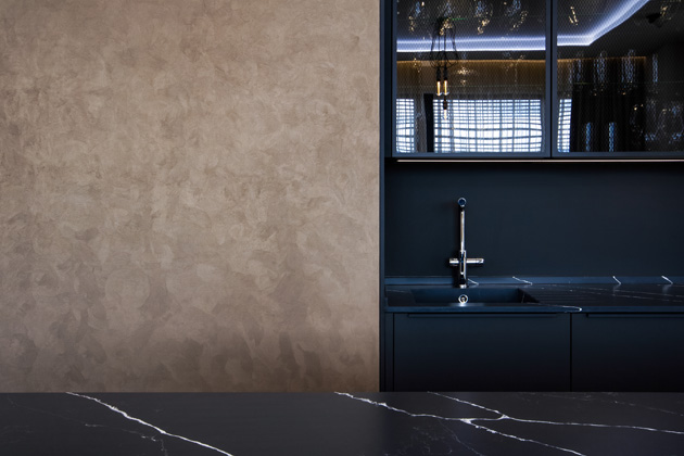 Perlata nejlépe vyniká v kombinaci s dobře zvoleným osvětlením, ideálně směrovým nebo bodovým, které podtrhne strukturu a proměnlivost povrchu. Perlata tak v interiéru nehraje jen dekorativní roli, ale skutečně podtrhuje atmosféru místnosti.
