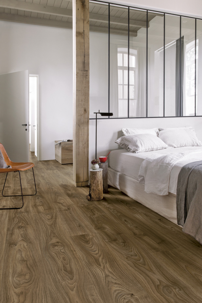 Zase záleží, jak frekventované místnosti jsou. A zda-li se v nich pohybují děti, domácí mazlíčci apod. Dnešní kvalita materiálů však umožňuje použít téměř jakýkoli materiál téměř v jakékoli místnosti. Je zřejmé, že laminát nebo vinyl jsou odolnější než přírodní materiál, jakým je dřevo, ale například technologie Wood for life od Quick-Step posunula odolnost dřevěné podlahy na zcela novou úroveň. Tato speciální ochranná vrstva zabraňuje proniknutí nečistot do dřeva a současně pomáhá zachovat původní vzhled podlahy po dlouhá léta. Do vlhkých prostor pak doporučujeme naši novinku – zcela odolný Alpha Vinyl. Inovativní zámkový systém z něj dělá tu nejvoděodolnější vinylovou podlahu, jaká kdy byla vyrobena. Navíc se hodí pro renovace a lze jej instalovat například na původní keramickou dlažbu.