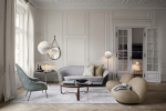 Sofa Revers (Gubi), design Gubi team, kov, textilie i kůže, cena od 60 277 Kč, křeslo Pacha Lounge Chair (Gubi), design Pierre Paulin, kov, textilie i kůže, cena od 60 277 Kč, křeslo Bat Lounge Chair (Gubi), design GamFratesi, dřevo, textilie i kůže, cena od 157 269 Kč → www.stockist.cz