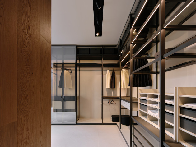 Hlavními protagonisty obývacího prostoru jsou modulární pohovky Saint Germain a Brera, jež lze vidět ve velkorysých kompozicích. Pokoj je dotvořen četnými univerzálními doplňky, jako jsou konferenční stolky Koishi, Orbit a Mush nebo křesla Kaori a taburety Ube. Následuje kuchyně, nesporné srdce domova, místo funkčnosti, ale i setkávání, která je proto čím dál častěji rozvíjena ve stále otevřenějších a mnohotvárnějších systémech. Zde se konkrétně jedná o modely Phoenix, Alea Pro a Shape, které svědčí o vývoji současného kuchyňského prostředí k dialogu s jídelními prostory. Trend otevřenosti a komunikace je symbolicky ztvárněný prostřednictvím velkoformátového stolu Curve v kombinaci se židlemi Ipanema a obývacím systémem Lexington. Nakonec se představuje sféra spacího prostoru, počínaje velkolepými šatními skříněmi Senzafine, Ubik, Ego, Cover a Plus v dokonale se doplňujících kombinacích, které svědčí o tom, jak jsou všechny výtvory Poliformu ve vzájemné harmonii – designové i stylové. A to až do ložnice, kterou reprezentuje manželská postel Kelly doplněná nočními stolky Onda.