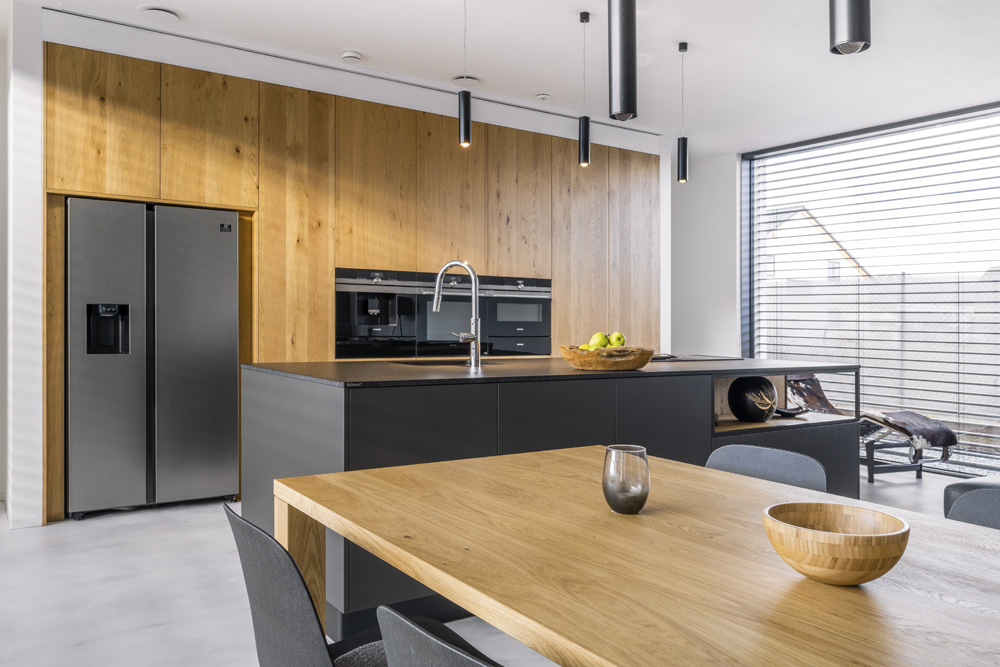 Kuchyně se stává sofistikovaným systémem, který lze propojit s chytrou domácností, nicméně stále klademe důraz na architektonický návrh a kvalitní materiály splňující ty nejvyšší požadavky. V oblibě jsou bezúchytkové systémy otevírání, variabilní výsuvy na potraviny i nadstandardně velké lednice.