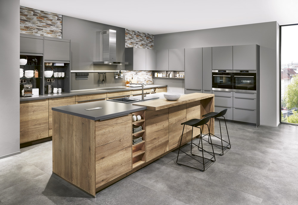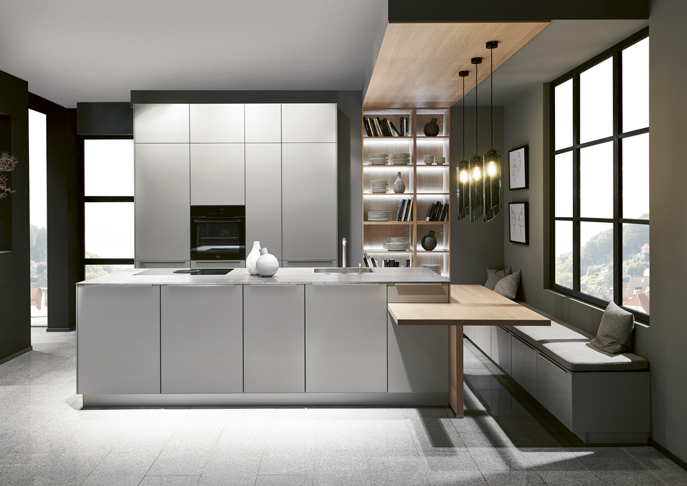 Tyto materiály jsou stále oblíbenější v architektuře obecně. Důležité je, aby jejich využití bylo vždy sladěné s celkovým charakterem interiéru. Nolte Küchen nabízí širokou škálu materiálů, které věrně imitují kámen nebo kov. Například u povrchu, který imituje Corten, používáme i skutečné kovové částice, čímž získáváme magnetický účinek. Populární je i cementobetonový povrch, ten nabízíme buď v přírodní variantě s ručně nanášeným povrchem, nebo jako jeho věrnou kopii s povrchem z melaminu. S imitací jsou vždy spojeny nižší pořizovací náklady.