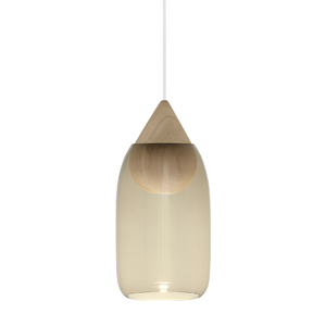 Foto: MaterZávěsné svítidlo Liuku (Mater), design Maija Puoskari, dřevo a ručně foukané sklo, průměr 19,5 cm, cena 12 542 Kč → www.stockist.cz