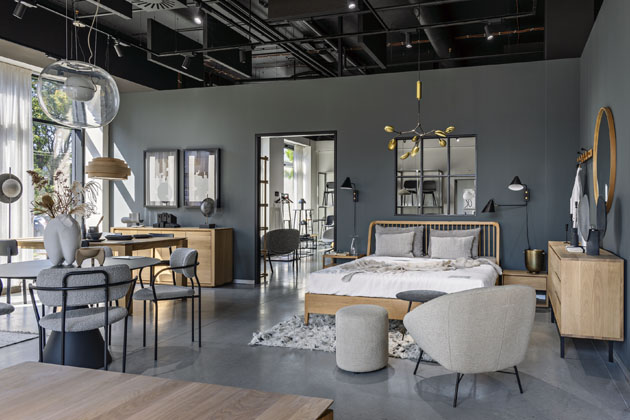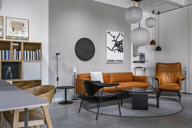 K výběru se zde přistupuje kurátorsky, nic tu není nahodilé a jednotlivé expozice, kterých je na ploše 840 metrů čtverečních bezpočet, mají stejný narativ. Na otevřeném prostoru vznikly pomyslné obytné zóny, jež tematicky spojuje výrobce, způsob užití i uspořádání, nechybí doplňky, svítidla, umění. Vše si můžete osahat, vyzkoušet, užít.