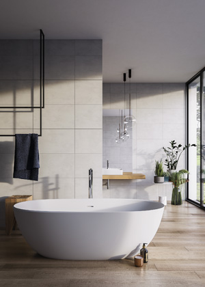 Foto: RefinOverlay(Refin), obklad a dlažba v imitaci cementu, cena od 1 776 Kč/m2 → www.koupelny-ptacek.cz