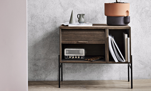 Komoda z kolekce Hifive (Northern), design Rudi Wulf, provedení dubová dýha a kovové nožky, cena v délce 75 cm 41 220 Kč, www.designville.cz