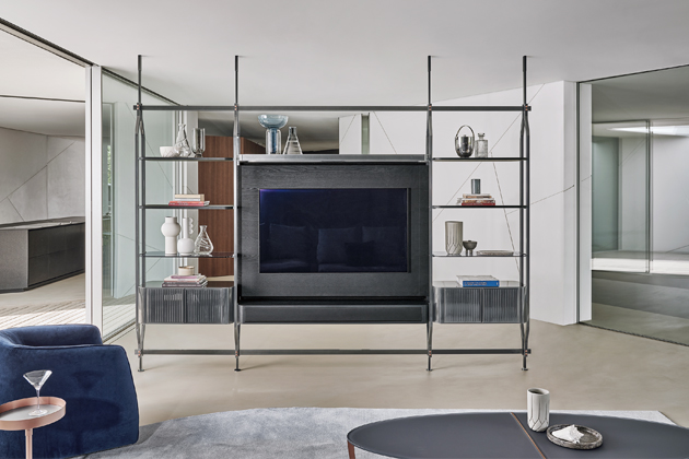 Foto: Bontempi CasaModulární televizní stěna Charlotte (Bontempi Casa) je určena k umístění ke zdi i do prostoru, orientační cena 225 000 Kč (dle zvolené konfigurace), www.casamoderna.cz