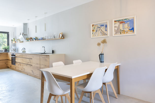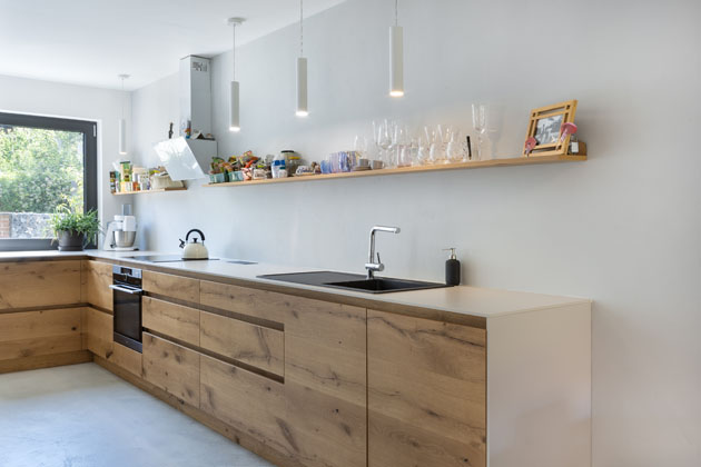 Za nás můžeme jedině doporučit. Stěrka nestárne, vypadá dobře, nadčasově a moc hezky se kombinuje se dřevem. Z praktického hlediska se dobře čistí a celkově je na ni málo vidět špína. Také dobře propouští teplo.