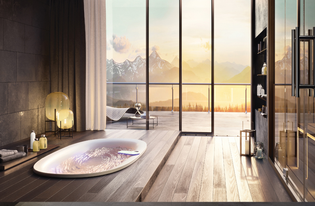 Moderní vany a sprchové systémy promění koupelnu v soukromé lázně s přizpůsobitelnými světelnými, zvukovými a vodními zážitky → www.laufen.cz