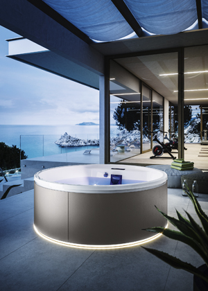 Foto: Ronal Bathrooms Nubea Round (Glass1989), vířivá vana vhodná k zapuštění i solitérnímu umístění, Filo trysky, světelná a barevná terapie, Bluetooth, Ø 166 cm, cena 101 830 Kč → www.ronalbathrooms.cz