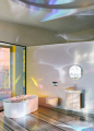 Foto: Koupelny PtáčekAqua Moon (Dornbracht), do stropu zapuštěná sprcha nabízí různé barevné světelné scénáře, které kombinuje se čtyřmi režimy vodních proudů, cena na dotaz → www.koupelny-ptacek.cz
