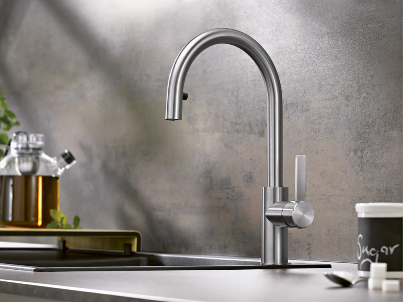 Extrémně vytíženým prvkem každé domácnosti je právě kuchyňská baterie. Používáme ji denně, a proto je třeba myslet jak na její kvalitu, tak na estetické provedení. Do otevřeného prostoru kuchyně se perfektně hodí páková baterie výraznějšího tvaru či barvy, která podtrhne čistotu a volnost prostoru. Nejoblíbenější jsou stále povrchové úpravy v chromu či nerezu. Postupně se ale design mění a nastupujícím trendem se stávají retro baterie v černé barvě, měděném provedení, anebo moderní barevné varianty.