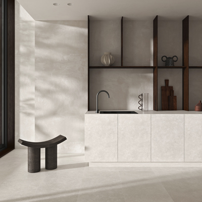 Foto: Terrantina CeramicheLess (Terrantina Ceramiche), kuchyň s obkladem imitujícím vzhled vápence, obklady jsou dostupné v bohaté škále formátů a ve čtyřech odstínech, cena na dotaz → www.terrantinagroup.com