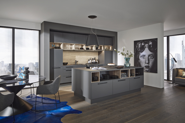 Sestava (Nolte), vrstvený laminát Grafit Soft Mat Plus s povrchem protiotiskům prstů → www.nolte.de