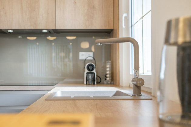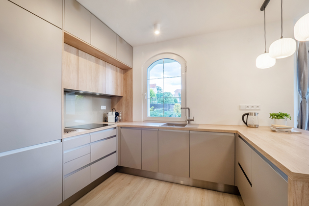 Jako první přišla na řadu kuchyň, jejíž realizaci svěřili Oresi. Pozitivní reference přišla přímo od Gábiny, která si od nich pořídila kuchyň v minulém bytě a doporučení dostala i od kamaráda, operního a muzikálového pěvce Mariana Vojtka, který na svou „Oresi kuchyň“ nedá dopustit.