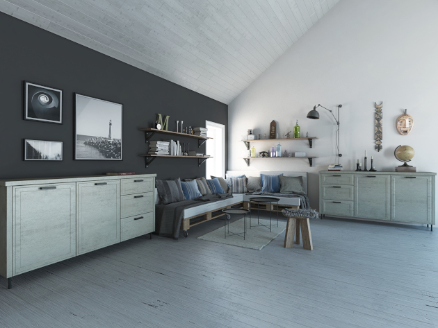 Beton skvěle vynikne i na větších plochách v kuchyni či obývacím pokoji. „Díky fóliovaným dvířkům s dekory světlý a tmavý beton, které jsou věrně podobné své předloze, můžete do betonového kabátku zahalit také nábytek, pro který by bylo použití skutečného betonu z hlediska hmotnosti prakticky nemožné,“ říká Martin Dusík, obchodní ředitel společnosti Trachea, největšího českého výrobce nábytkových dvířek, a popisuje další výhody fóliovaných imitací betonu: „Fólie se navíc snadno udržuje a díky tomu, že obepíná dvířka z pohledové strany i ze všech čtyř hran, chrání nábytek před pronikáním vlhkosti.“ Její použití je proto bezproblémové i v náročném prostředí kuchyně či například koupelny.