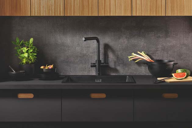 Velkým trendem jsou také baterie v černé barvě, které nabízejí snadnou údržbu. Výrobky Grohe v barvě Phantom Black jsou díky technologii trojího lakování mnohem trvanlivější a odolnější oproti černým variantám ošetřeným práškovou barvou. Velkou výhodou je, že díky této technologii mnohem lépe odpuzují viditelné otisky prstů a vyžadují méně čištění.