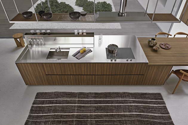 Sign 01 (Ernestomeda), mycí centrum v nerezovém provedení s extra prostornou odkapávací plochou → www.kuchyne-ernestomeda.cz
