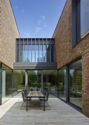 Vilu tvoří dvě spojené hmoty, mezi nimiž vzniklo atrium. Přízemí poskytuje společné prostory, zatímco v patře jsou privátní pokoje?