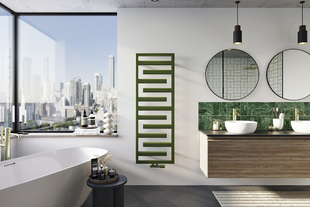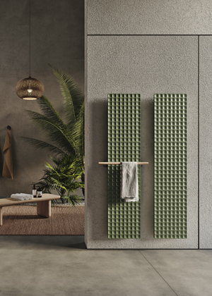 Radiátor Tetris (Zehnder), design studio King & Miranda, barva Olive green, více barev, šířka 50 a 60 cm, výška 86/110/146/170 cm, cena od 14 756 Kč → www.zehnder.cz