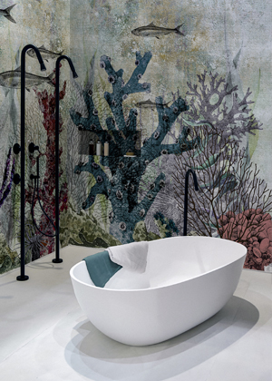 Sytá zeleň deštných pralesů či bujných tropických rájů i jejich jemné tóny v mlžném oparu halí moderní koupelny do tajemného svěžího hávu. Hrají všemi odstíny smaragdů a hostí klidem.