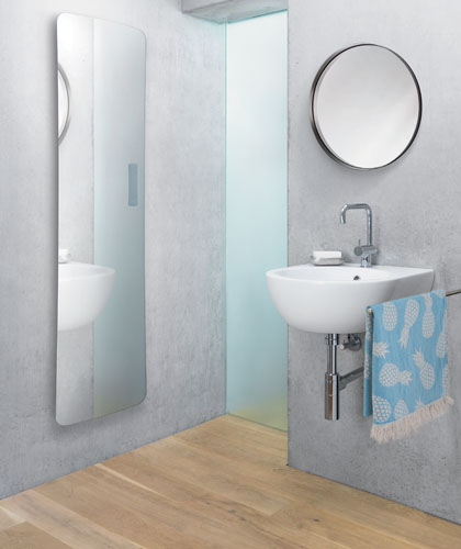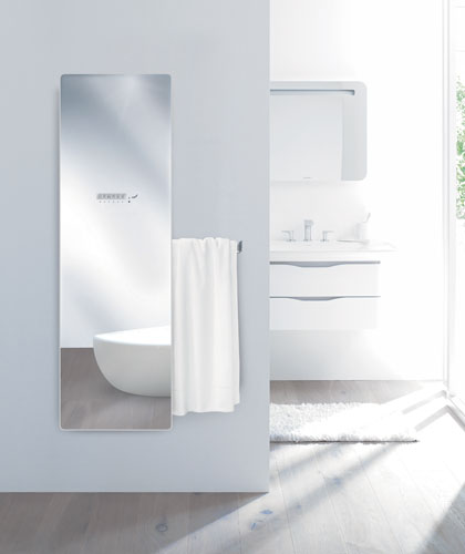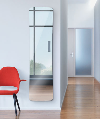 Inovativním skleněným povrchem v zrcadlovém provedení mohou oplývat i dnešní moderní radiátory! „Elegantní radiátor Zehnder Folio Glass ze Studia Collection s extrémně plochou konstrukcí pouhých osm milimetrů a zužující se siluetou nabízí kromě temně černé a sněhově bílé lesklé varianty i možnost zrcadlového provedení. Díky své výšce 180 centimetrů zajišťuje funkci velkého zrcadla, ve kterém se bez problému uvidíme od hlavy až k patě. Radiátor je vyroben z vrstveného bezpečnostního skla, v němž je zabudovaná topná fólie zajišťující okamžité příjemné sálavé teplo,“ popisuje Ing. Miroslav Váša, vedoucí prodeje designových radiátorů Zehnder, a doplňuje: „Zrcadlovou funkci v může plnit i elektrický skleněný radiátor Zehnder Deseo Verso, který má v závislosti na výšce radiátoru ze zadní strany upevněn dokonce jeden nebo dva výsuvné držáky pro rychlé sušení drobného textilu.“ Pohled do něj tak nebude nic kazit!
