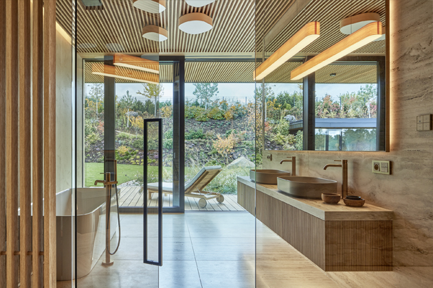 V případě Garden Vily byl tou nejzásadnější výzvou na první pohled složitý, svažitý a skoro až nepoužitelný pozemek. My jsme v něm ale dokázali nalézt půvab, který za ním nikdo jiný do té doby nespatřil. Nakonec jsme se rozhodli právě na tom postavit hlavní koncept návrhu. Ve svahu vznikla okrasná zahrada, do které se otáčejí všechna okna domu. Domu, ve kterém jsou právě z tohoto důvodu objemy jednotlivých funkcí za sebou seskládány do liniové kompozice. Díky tomu se nám povedlo dokonale propojit interiér s exteriérem – z každého pokoje máte výhled na „zelenou stěnu“.