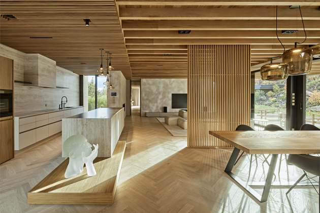 Inspiraci přirozeným stavem světa kolem nás architektům z Atelier Kunc Architects nelze upřít. Dřevěným prvkům v jejich realizacích hravě sekundují obklady z přírodního kamene, doplňky z proutí i impozantní skleněné lampy. Největší pozornost však i přes veškerou řemeslnou kvalitu stále věnují úchvatným výhledům do zeleně. Na filozofii, úspěchy i směřování ateliéru jsme se zeptali zakladatele Michala Kunce.