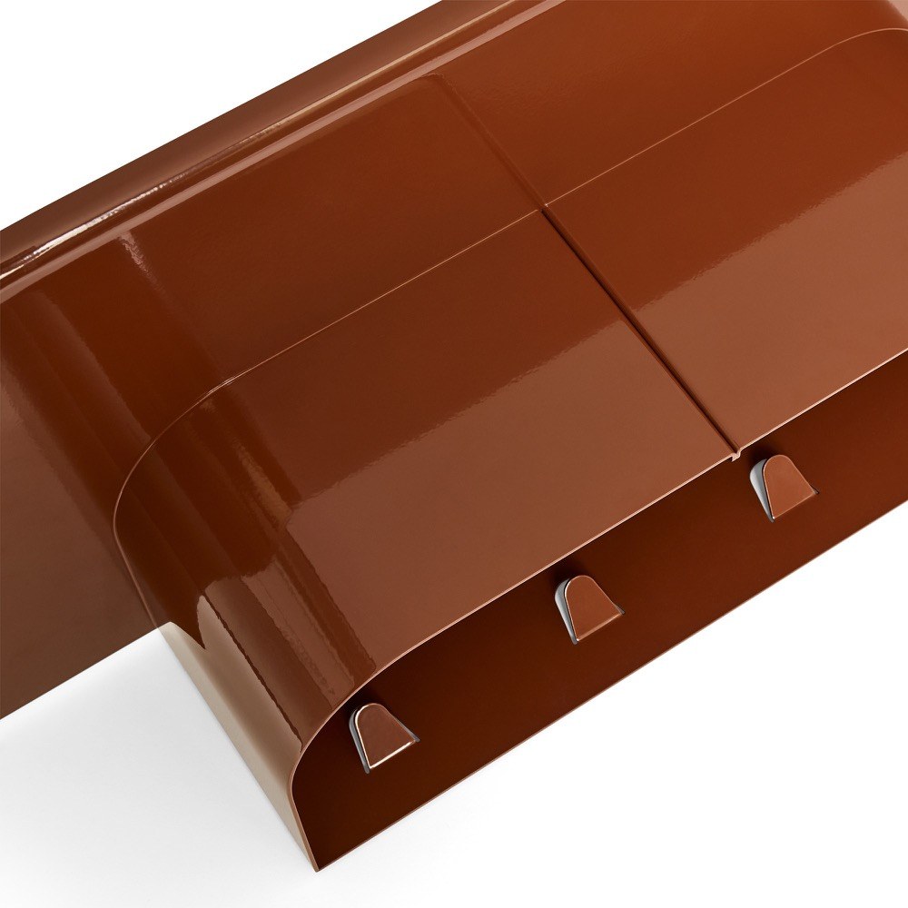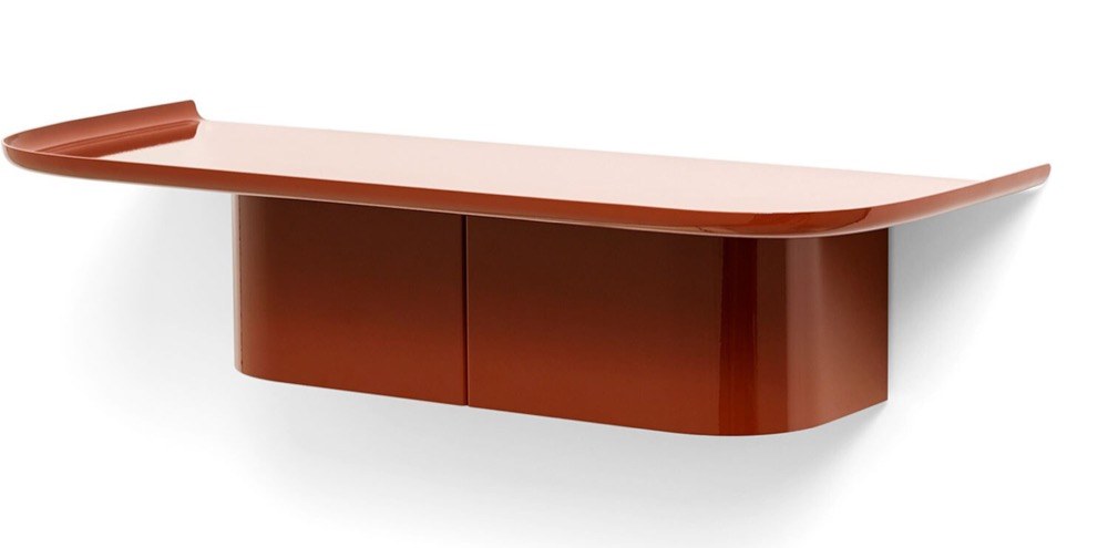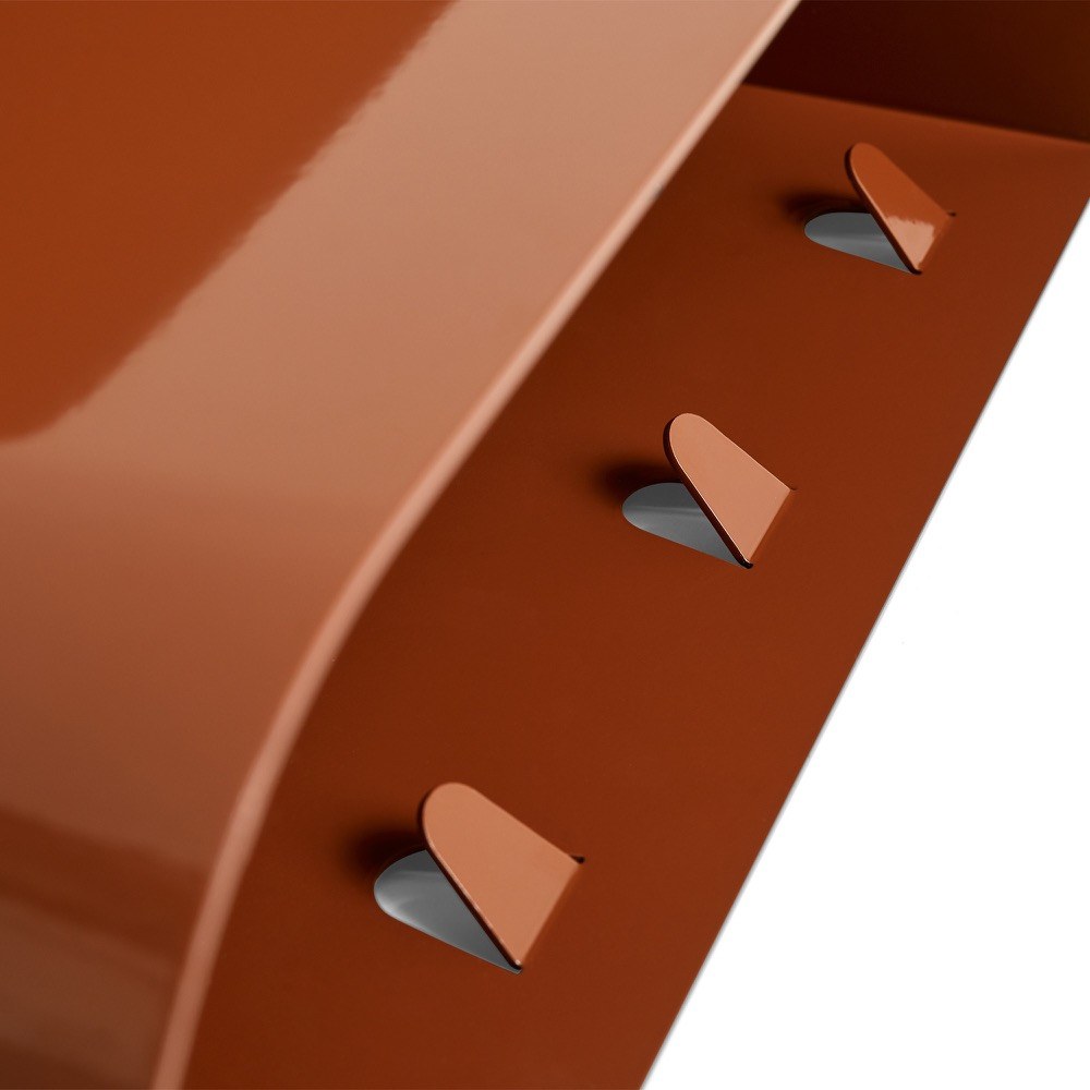 Nástěnné police Korpus (HAY) od dánského designéra Andrease Bergsakera poskytují kromě odkládací plochy na vrchní desce také možnost zavěsit ručníky, utěrky nebo třeba dekorace na věšáky, které jsou umístěny skrytě uvnitř dutého sloupku.