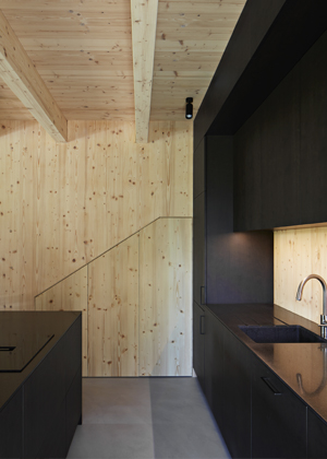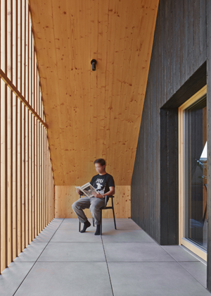 Tvar střechy a její přesahy vycházejí z typických tvarů původních chat, zároveň poskytují stínění jižní fasády a chrání terasu před deštěm. U hlavní ložnice, za stínicími lamelami, vzniká vykonzolovaný balkon, ‚venkovní pokoj‘,“ uvádí autorská zpráva. Exteriér zdobí opálené dřevo a v interiéru byly použity pohledové CLT panely. Přírodní materiály a celkové pojetí stavby ctí charakter dané lokality, plynule navazují na její historii a zároveň dobře odrážejí současné potřeby i tendence v architektuře.