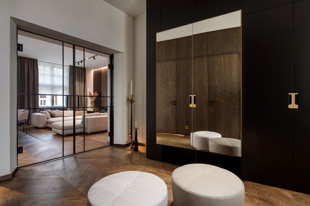 Záměrem návrhu interiéru nebylo vrátit ho minulému století, ale stejně jako v době první republiky pracovat řemeslně s každým detailem, pečlivě volit materiály, tvary i dekory. Vytvořit prostor, který by bez sentimentu odrážel styl domu, jeho vnitřní charakter a nabízel všechny atributy současného standardu bydlení rodině, která však trvale žije mimo centrum Prahy a využívá ho jen příležitostně.