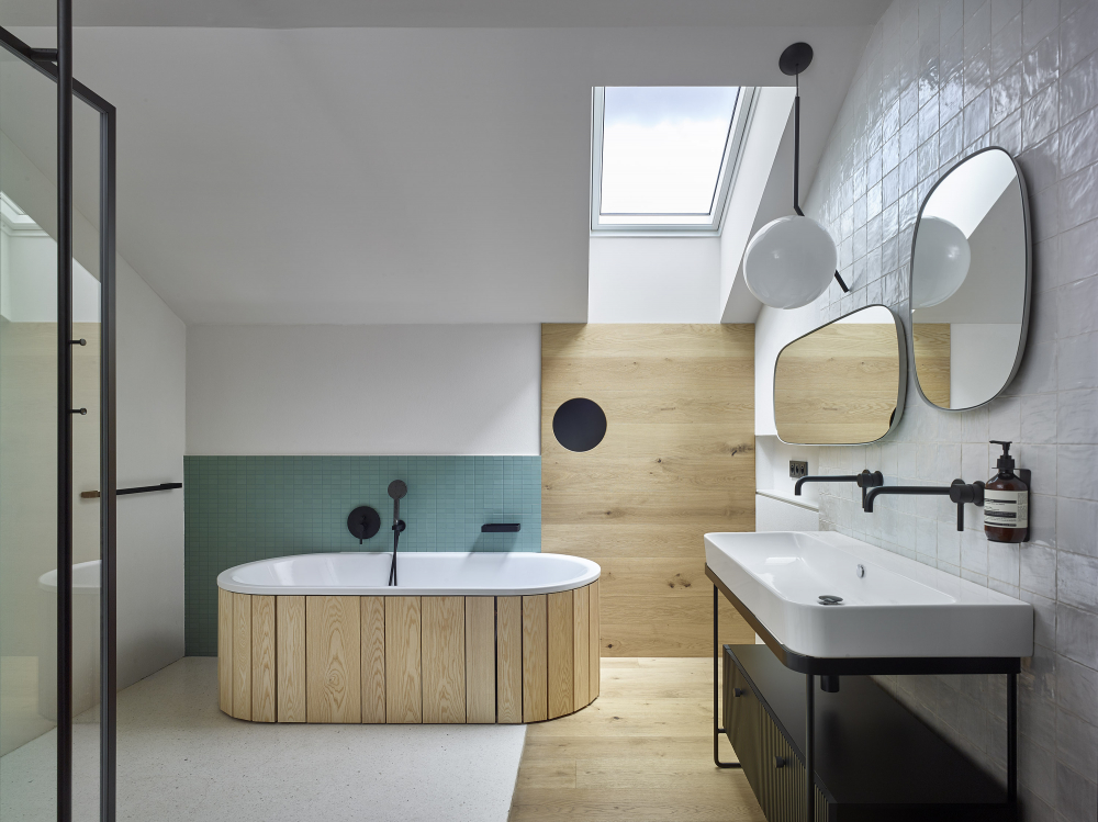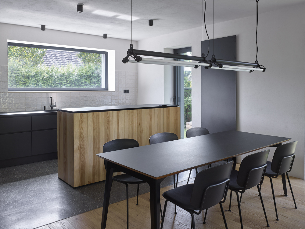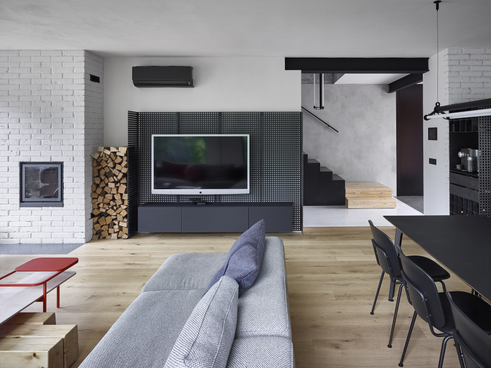 Interiér navrhla Ing. arch. Tereza Čudová Ajmová a realizovala společnost cre8. A protože alfou a omegou návrhů architektky je přirozené světlo v interiéru, i tato rekonstrukce s sebou nesla výrazné zvětšení prosklených ploch a přivedení denního světla i do prostorů bez oken, třeba za pomoci světlovodů (VELUX).