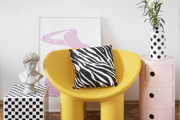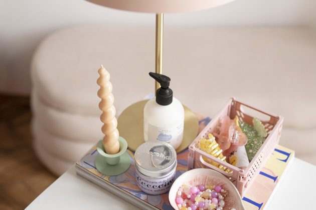 Vždy začínám s detaily. Dodávají interiéru charakter, a pokud je změna barvy stěn nebo podlahy složitější, lze doplňky libovolně přemisťovat, kombinovat, míchat mezi sebou, změnit jejich použití nebo účel. Talíř se může stát stojanem na šperky a plastový úložný košík stolkem.