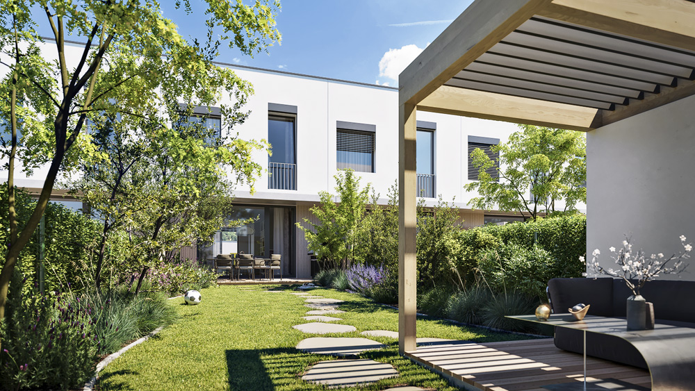 Rodinný život v obležení zeleně? Přesně tak vypadá život v top’rezidenci Pomezí, která postupně roste v pražských Košířích. Domov tam zájemcům nabízí 38 prémiových řadových rodinných domů, 59 nadstandardních bytů a 5 exkluzivních vil. Celý projekt má podobu urbanisticky působivého celku, který využívá terasovité členění pozemků ve prospěch soukromí svých obyvatel.