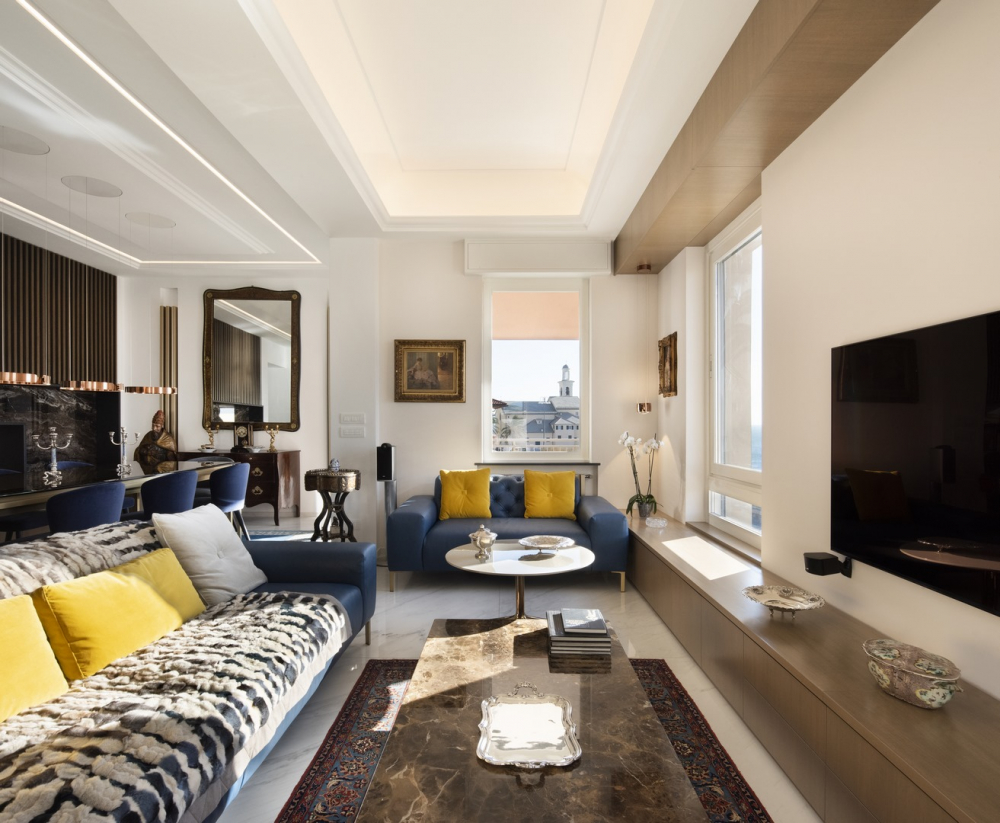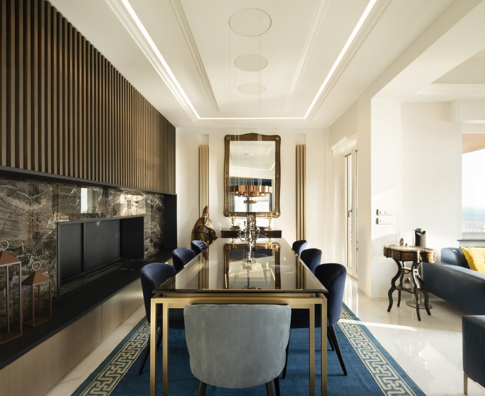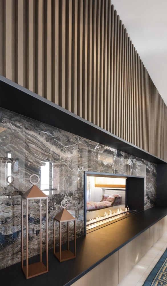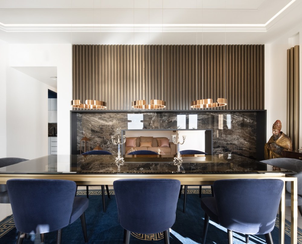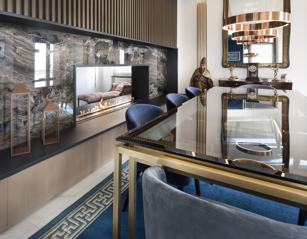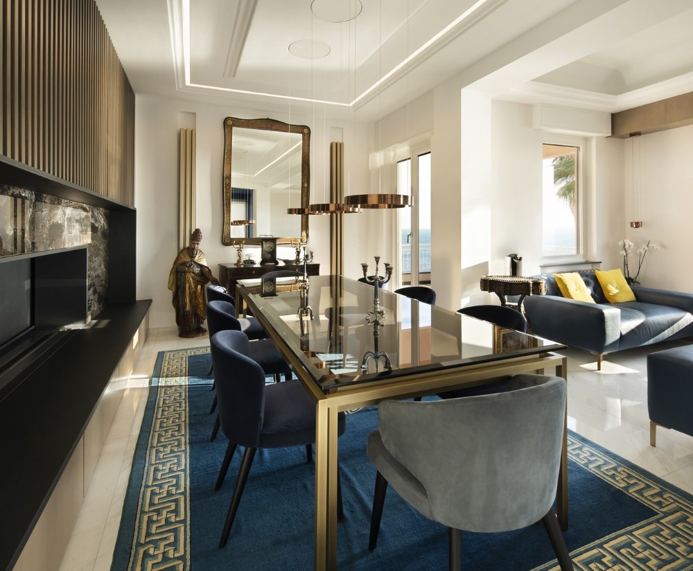 Italský architekt Andrea Orioli v celém prostoru rafinovaně využívá barvy, tvary a materiály a usiluje o vylepšení každého detailu také díky nábytku vyrobeného na zakázku.