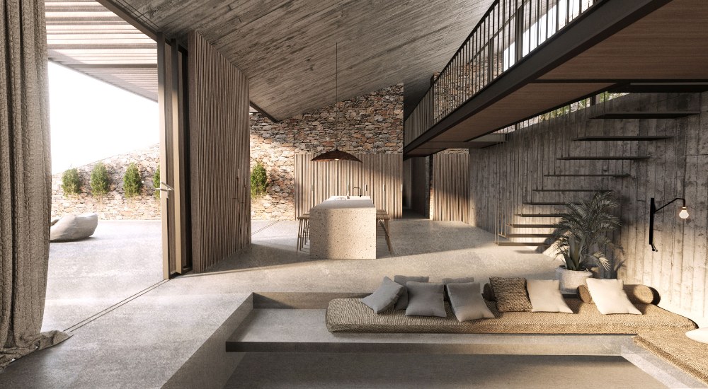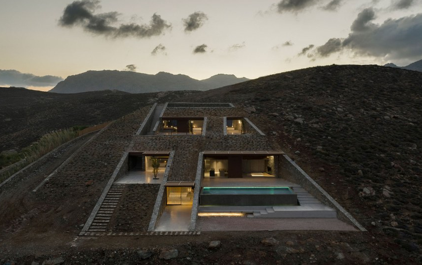 Dům NCaved se nachází v odlehlé zátoce tvořené skalními útvary na řeckém ostrově Serifos.
