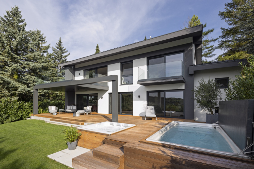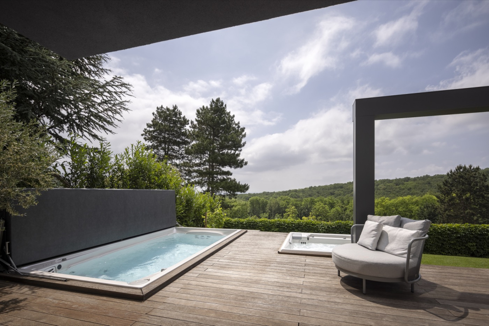 Rodina Nowakových si vybrala skvělou kombinaci celoročního bazénu swim spa a vířivky PerseaiN, díky které můžou pracovat na své fyzické kondici a zároveň si užít všech relaxačních benefitů vířivky kdykoliv se jim zachce. Podařilo se jim tak z terasy udělat ideální místo pro sport a odpočinek. Oba produkty skvěle zakomponovali do celého konceptu. Díky zapuštění spa a swim spa nenarušili celkový vzhled domu a zahrady a mohou si užívat skvělého výhledu do okolí. Jejich terasa tak působí minimalisticky. Především je ale místem pro vytváření nezapomenutelných okamžiků.